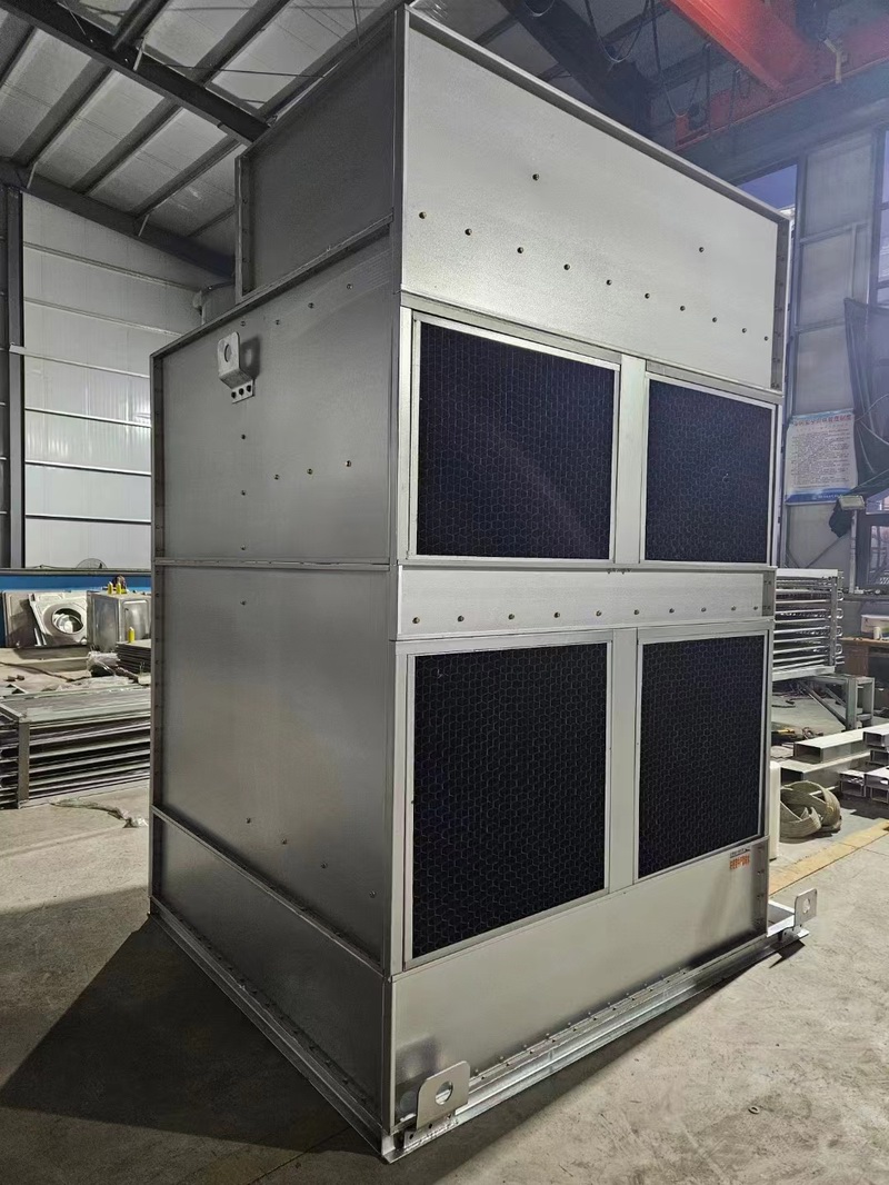 橫流式冷卻塔外接管注意事項:禁止在塔上進行焊接操作,焊接時應在遠離塔體處進行施工,完畢后再與冷卻塔預留出入水法蘭對接。